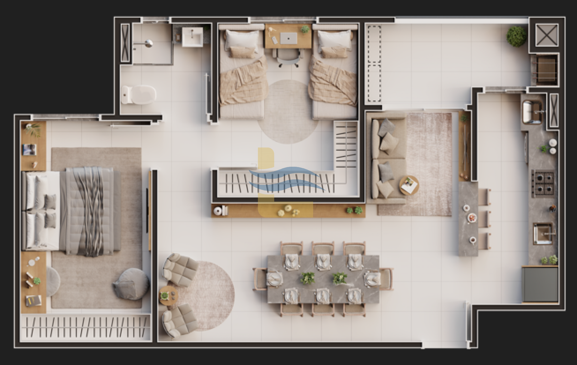 Além disso, o empreendimento conta com diferenciais sustentáveis, como aproveitamento da água pluvial, medidores individuais de água e gás, e sensores de presença nas áreas comuns.