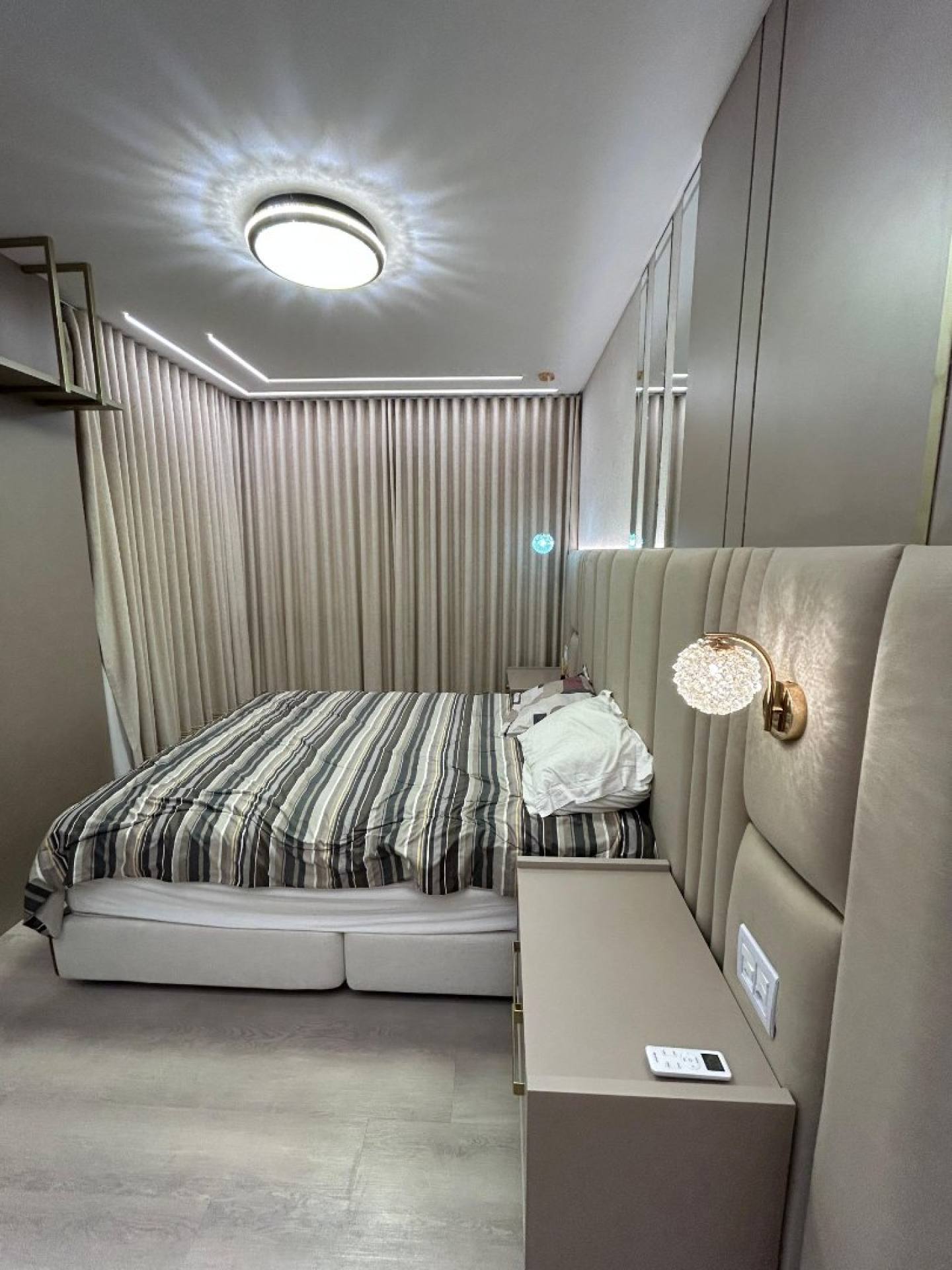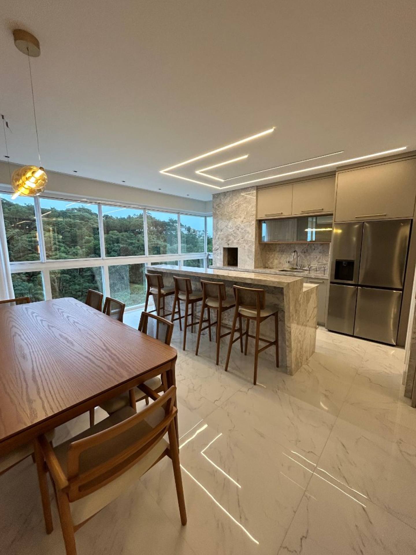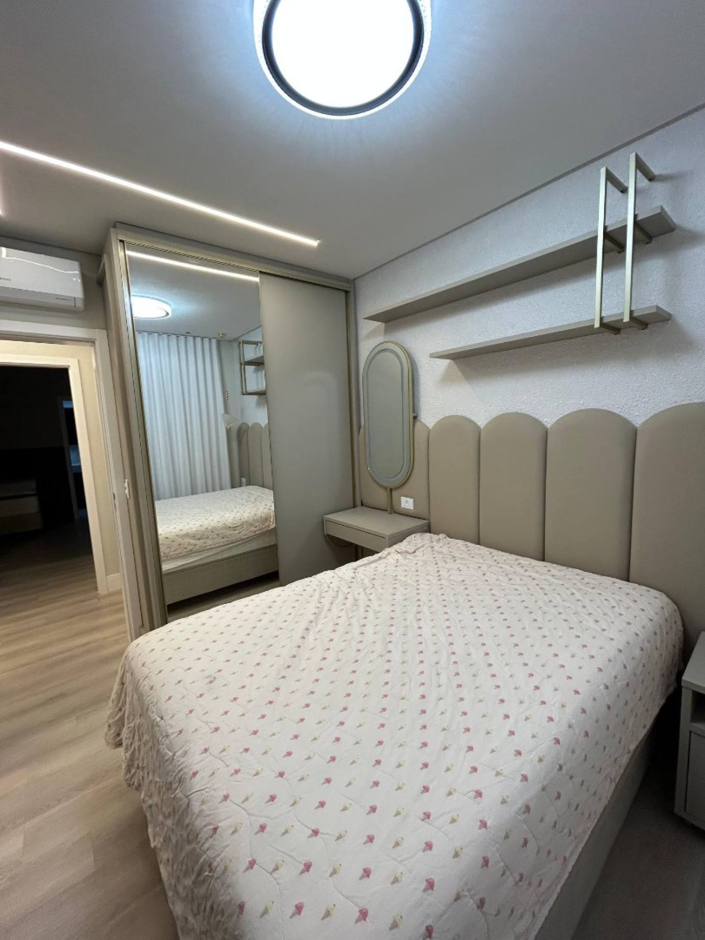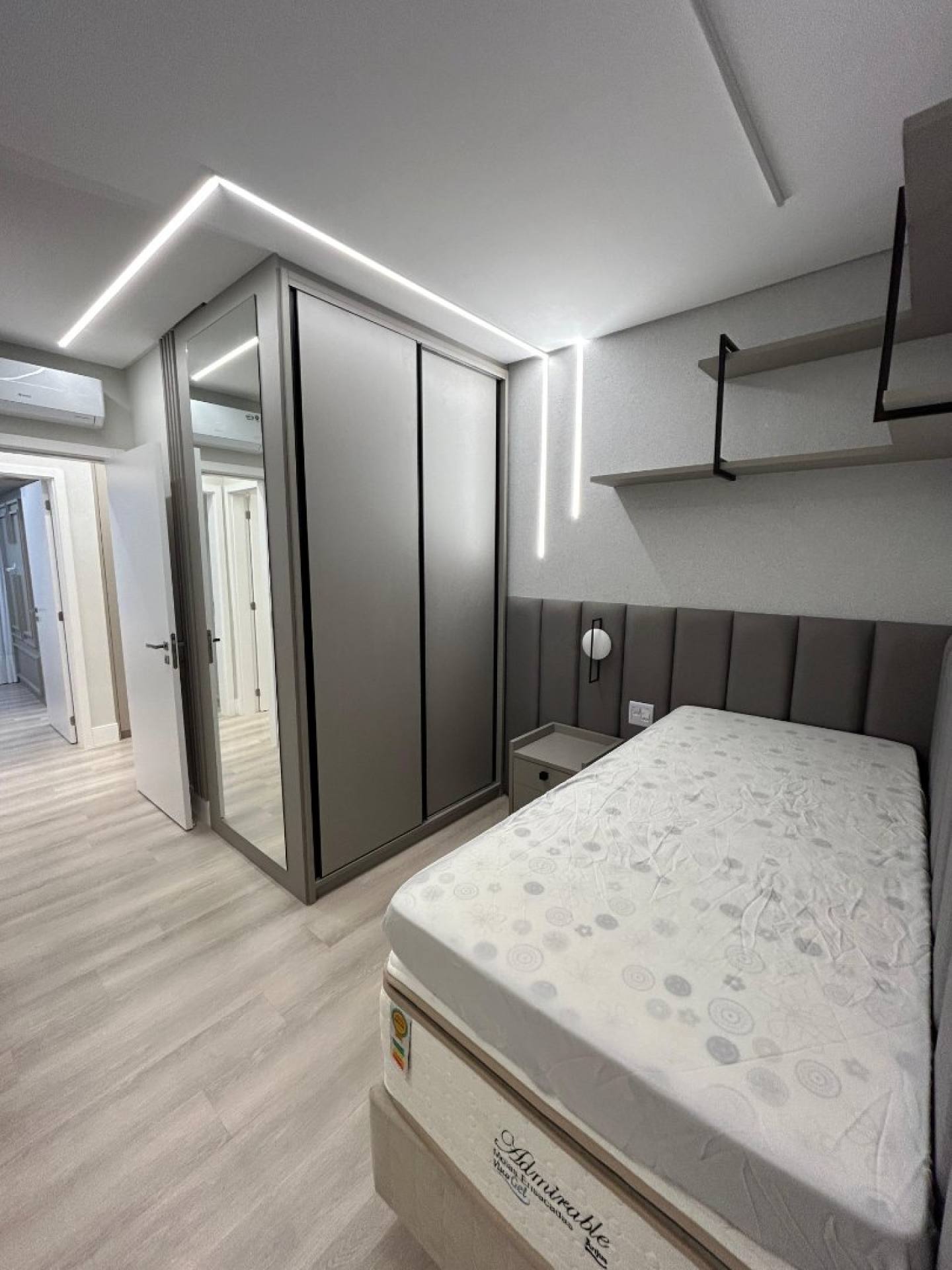 Com 3 amplas suítes e uma vista permanente para o mar, o apartamento impressiona pelo alto padrão nos acabamentos: móveis sob medida de excelente qualidade, iluminação em LED estrategicamente aplicada, detalhes em espelhos que ampliam e valorizam os espaços, além de uma ambientação moderna, elegante e acolhedora.